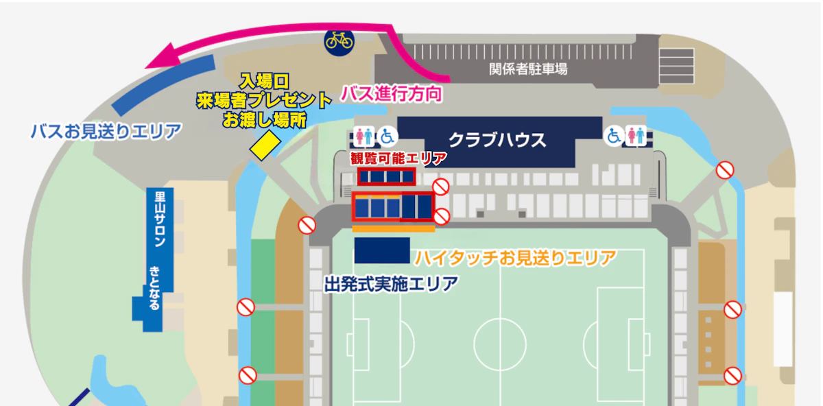 ※シーズンチケットご購入者を対象に、抽選で50名の方に、選手を送る花道を作っていただきハイタッチで出発のお見送りを行います。