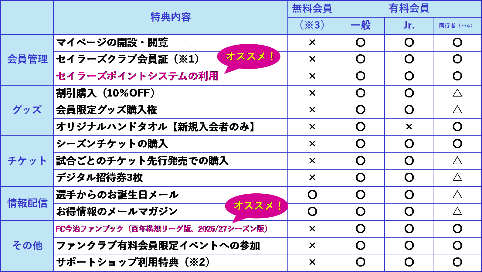 ※ファンクラブは、2026/27シーズンからは、通常の1シーズンプランの販売も行う予定です。