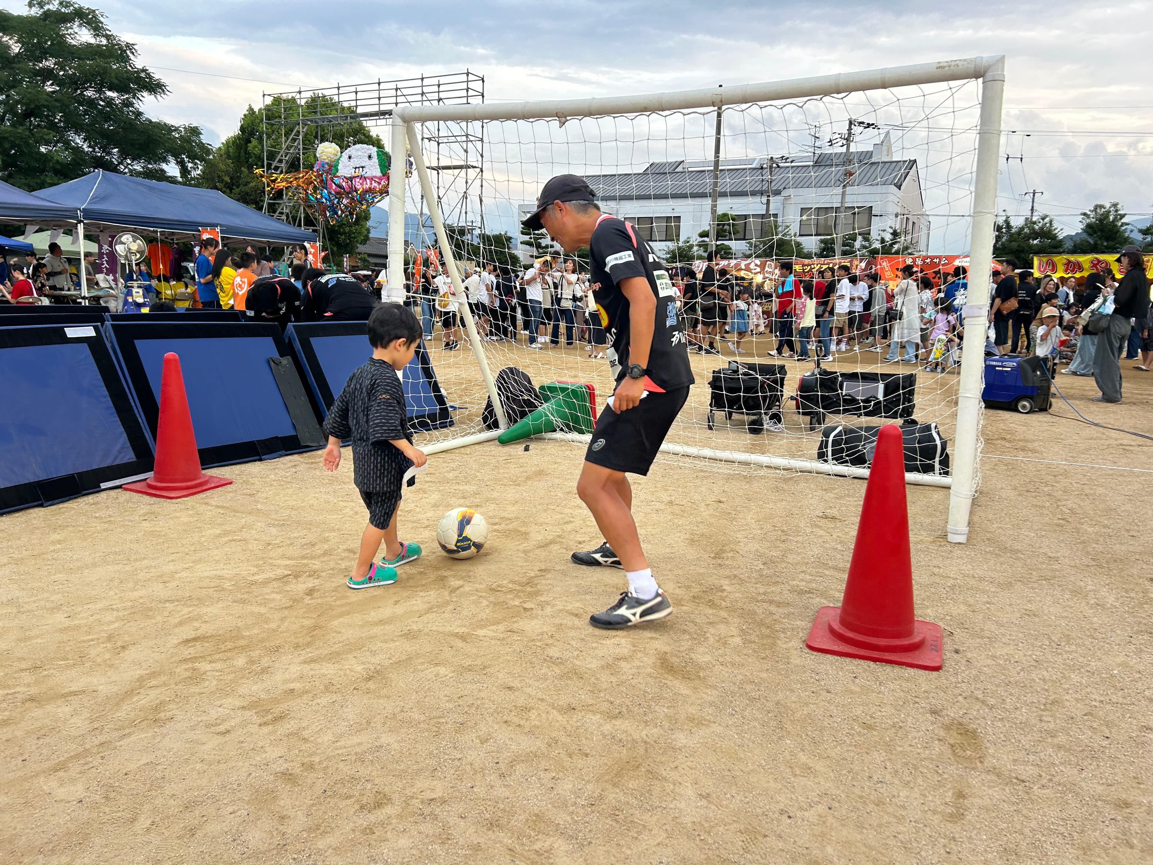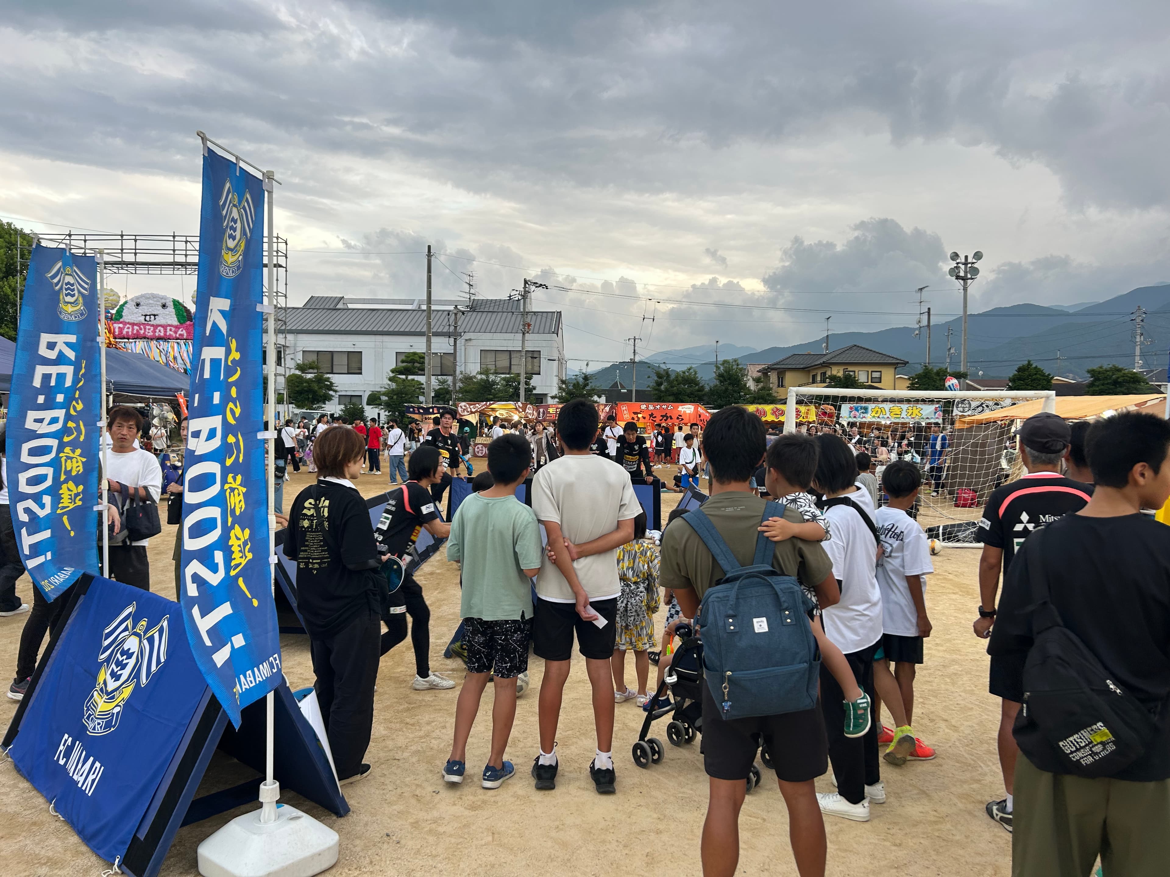 FC今治の地域コラボチーム(略して「ちいコラ」)と連携し、8月7日に西条市丹原で開催された「丹原七夕夜市」にサッカーボウリング&シュートスピード測定ができるブースを、ホームグロウンのコーチたちが出店しました!