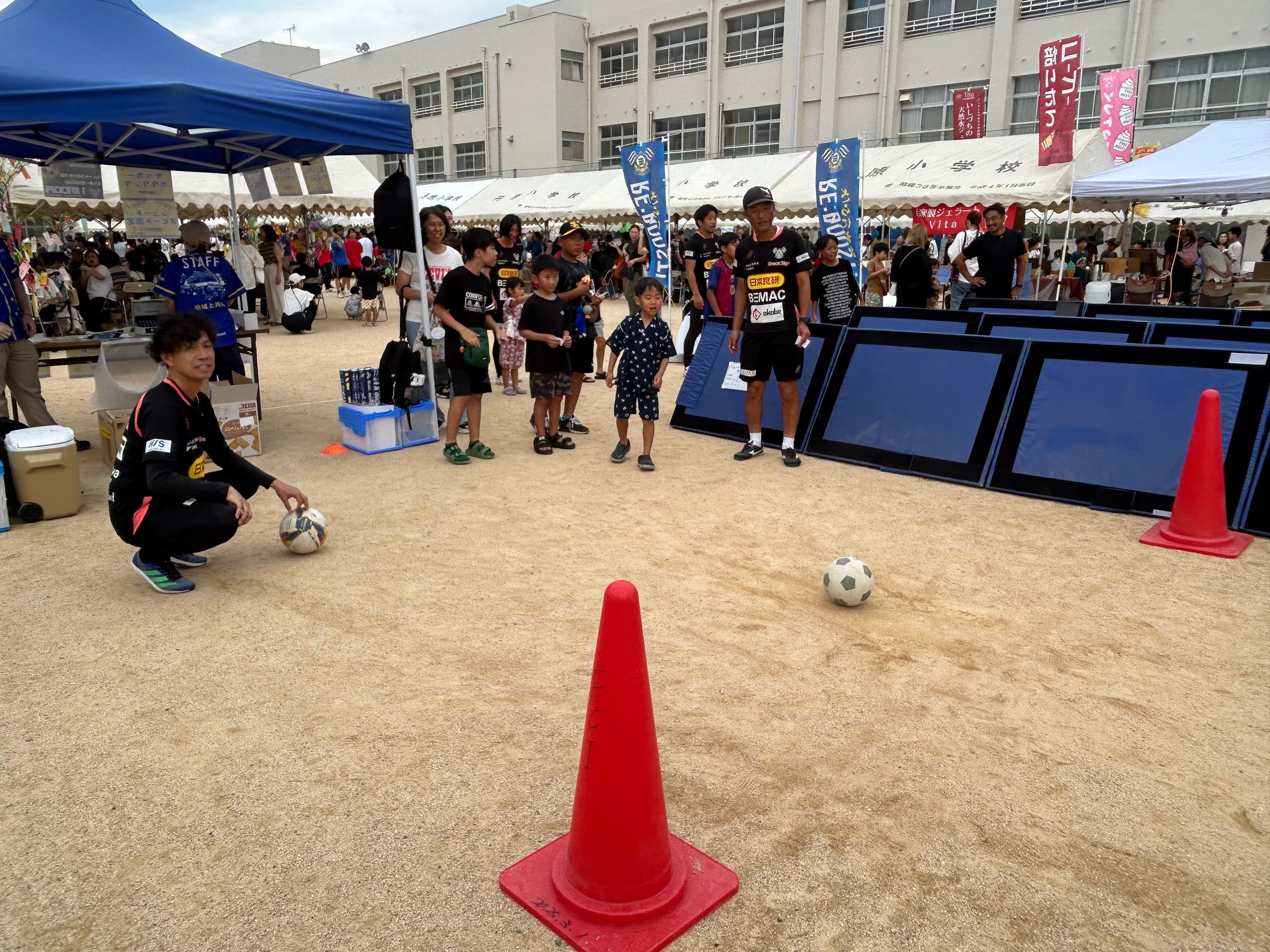 ブースには丹原地区の多くの子どもたちがブースに来てくださり、コーチと一緒にサッカーに親しみました。