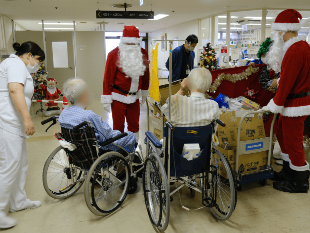 FC今治スタッフが、愛媛県立今治病院の小児科病棟を訪問しました。クリスマスイブをさまざまな事情で病院で過ごす子どもたちに、笑顔でイブを過ごすお手伝いをしたいと企画、実施いたしました。