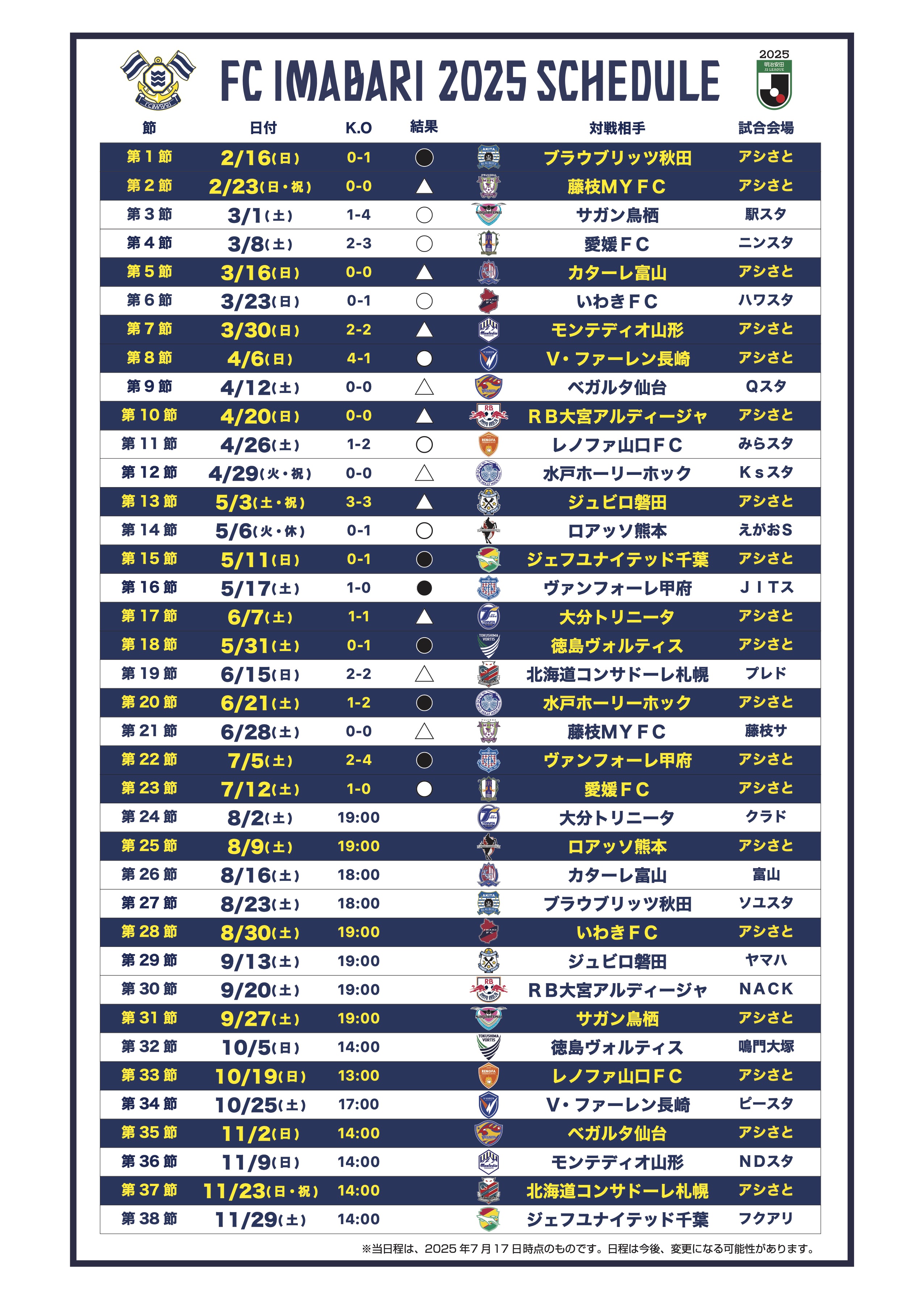 2025明治安田J2リーグ最終節までの日程およびキックオフ時刻が決定いたしましたので、お知らせいたします。