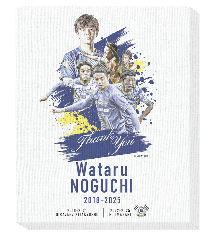 野口 航 選手の引退を記念して制作されたビジュアルをキャンバスにプリントしたアート作品のようなメモリアルグッズです。