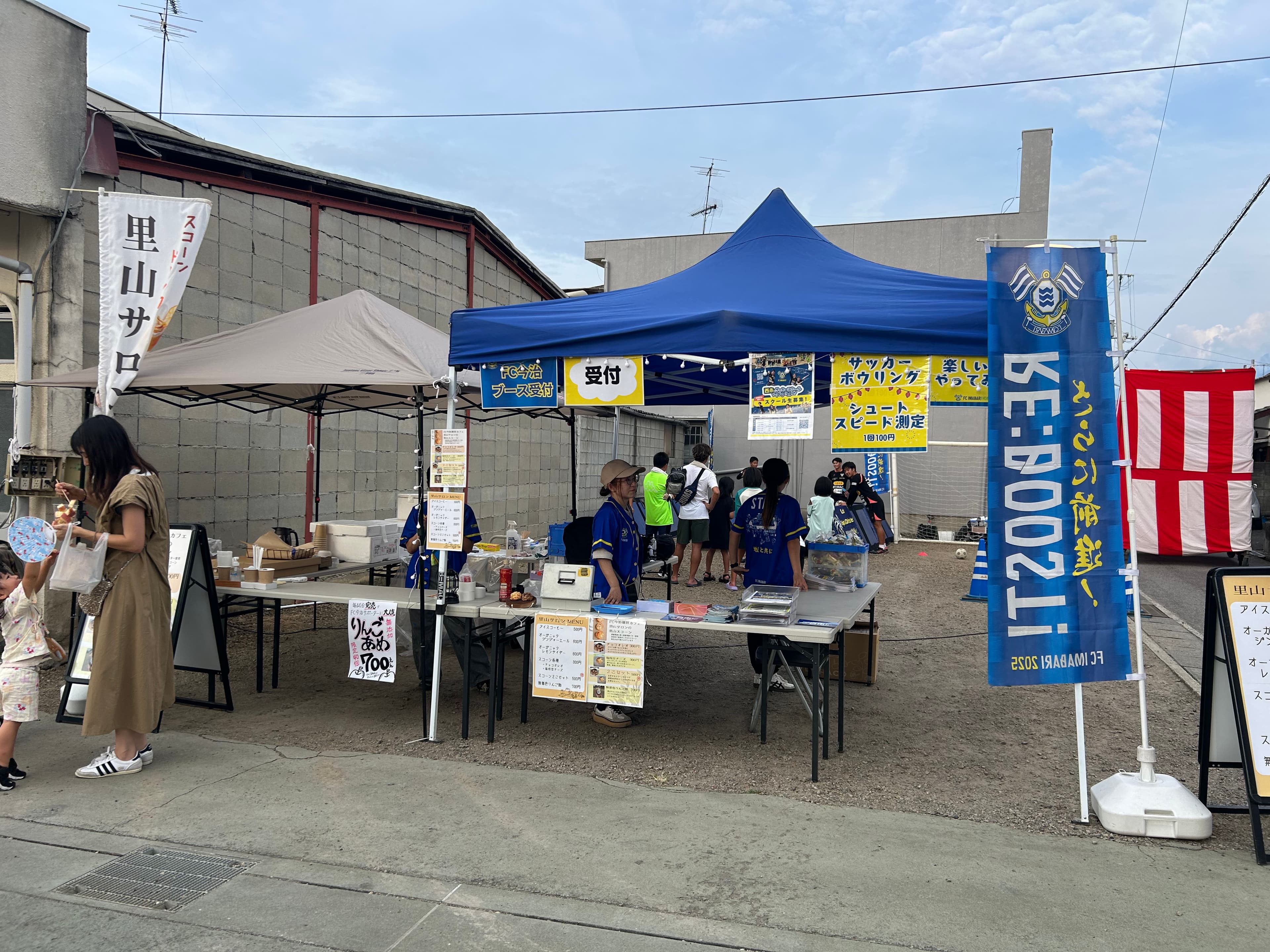 FC今治の地域コラボチーム(略して「ちいコラ」)の活動として、8月23日に西条市小松で開催された「小松町ふるさと祭り」にサッカーボウリング&シュートスピード測定ができるブースのほか、里山サロン出張販売を実施いたしました!